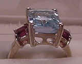 S.S. Emerald Cut Blue Topaz & Rhodolite Ring #113-45