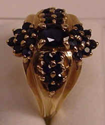 3x5 oval center blue sapphire; sides: 30 round 1.6 mm sapphires;